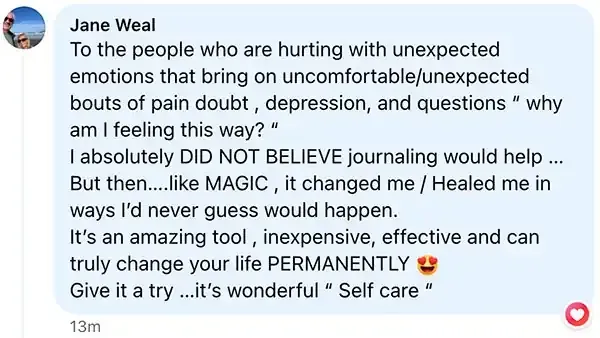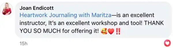 Disclaimer: This workshop is for personal growth and emotional exploration. It is not therapy, medical treatment, or a substitute for professional mental health care. Some students use it alongside therapy or counseling. If you're struggling with a mental health condition, please consult a licensed provider. The testimonials on this page are real stories from real students. Individual results may vary. Any results or examples shared by Heartwork Journaling™ (including its programs, trainings, workshops, and affiliates) are based on past participant experiences and are provided for illustrative purposes only. They are not a promise or guarantee that you will achieve the same outcomes.